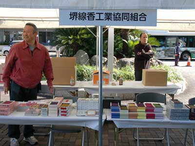 11月16日日曜日、堺市役所前市民交流広場にて、第22回堺区ふれあいまつりが開催されました。弊社が加盟する堺線香工業共同組合で参加するイベントは、これで本年度の最後となります。